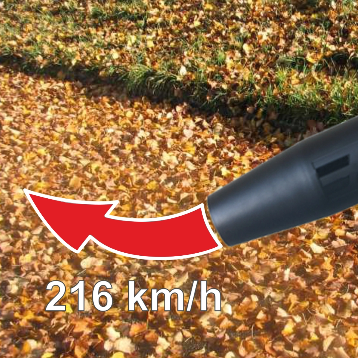 Con una velocità di soffiaggio di 216 km/h, il soffiatore per foglie libera senza sforzo il tuo giardino dalle foglie cadute.